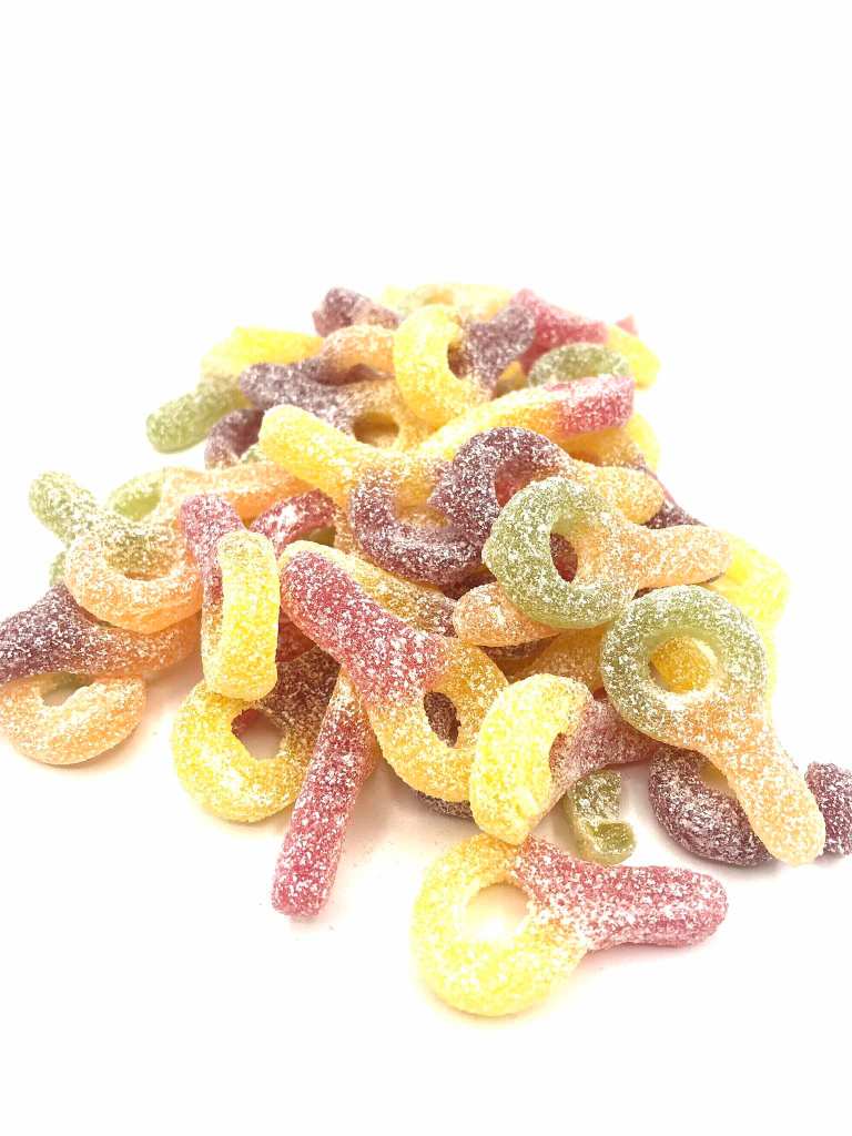 Bonbons mous en forme de bretzels au goût fruité.