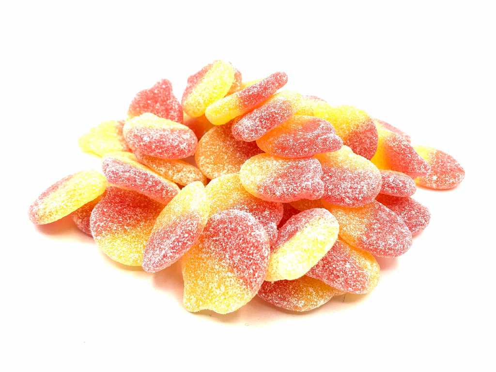 Bonbons moelleux et légèrement citriques au goût de pêche.