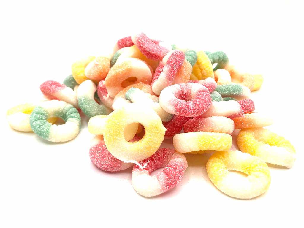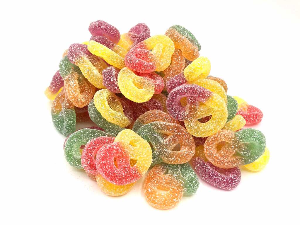 Bonbons acidulés, gélifiés et colorés aux différentes saveurs.