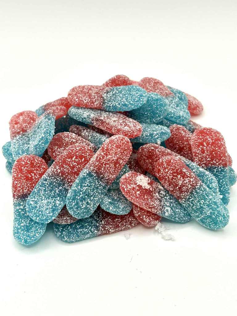 Bonbons mous en frome de pied au goût cola.