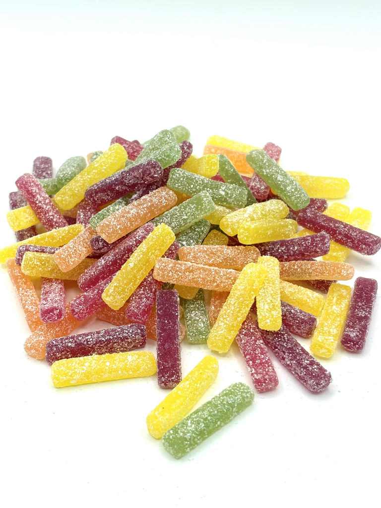 Bâtonnets colorés, fruités et multicolores aux goûts acidulés.
