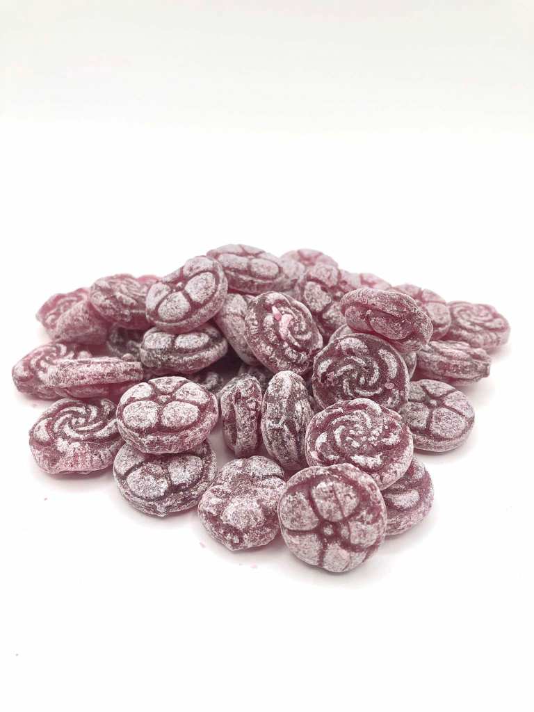 Bonbons moelleux à l’intérieur et croquants à l’extérieur. Goût: mûre et framboise.