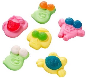 Bonbons d’origine anglaise gélifiés mous et colorés qui se déclinent en diverses formes.