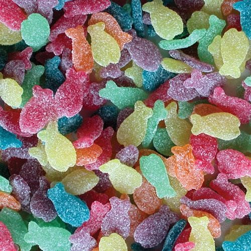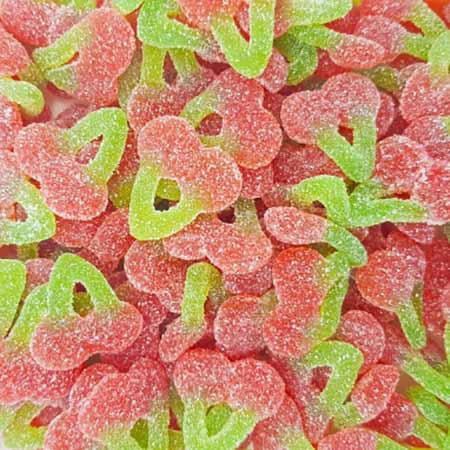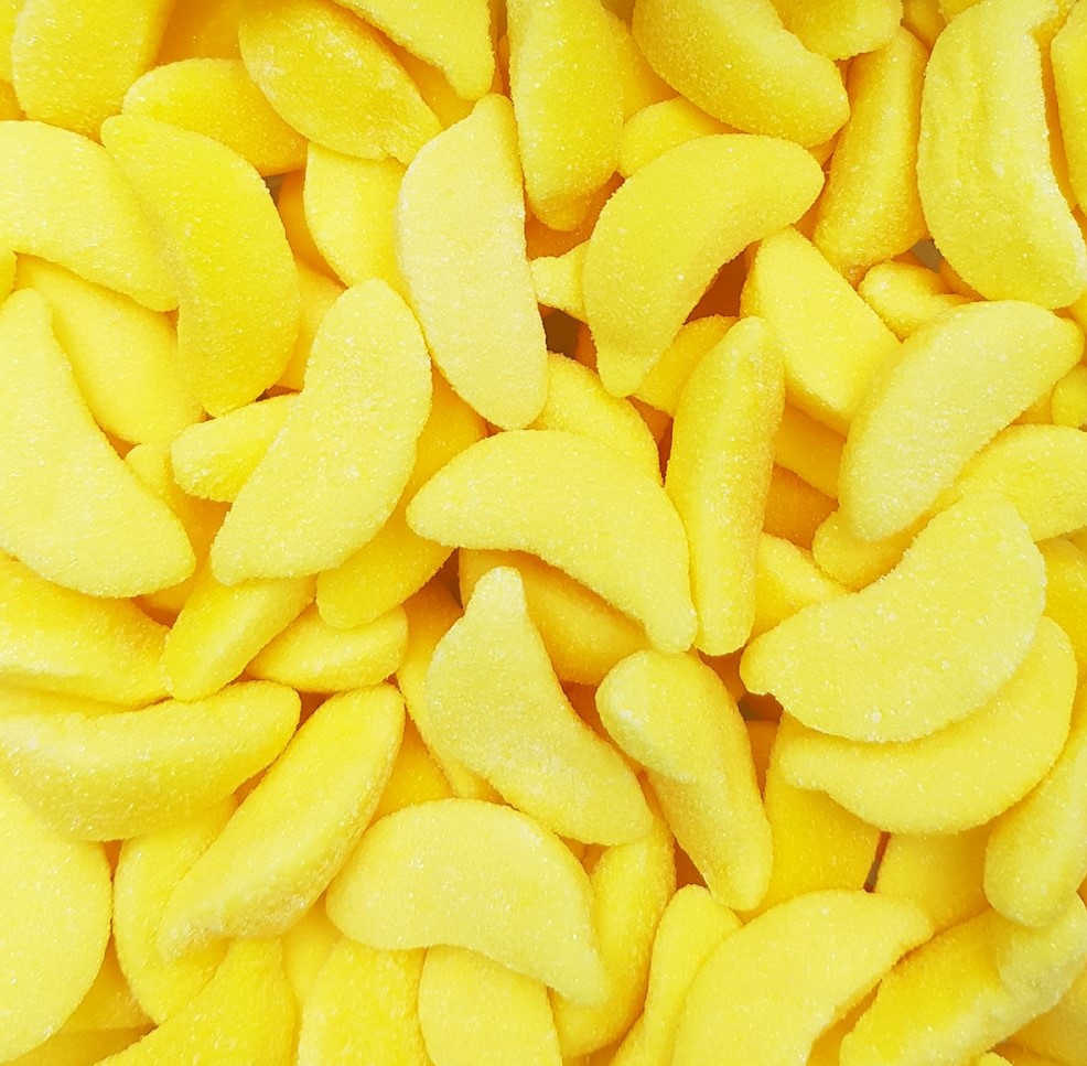Petites gommes tendres à l’ananas, citron, poire, orange, fruits des bois, cerise et violette.