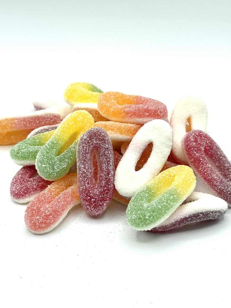 Gommes en forme d’anneaux, différentes couleurs pour différentes saveurs de fruits.